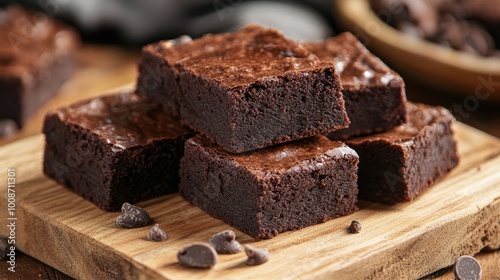 chocolate, brownie, dessert, sweet, treat, baked, fudge, cake, rich, decadent, chewy, gooey, delicious, homemade, bakery, pastry, confectionery, cocoa, sugar, butter, egg, flour, vanilla, dark, brown, wooden, board, cutting, rustic, closeup, macro, food, snack, appetising, deliciously, tasty, fresh, warm, soft, indulgent, satisfying, comfort, food photography, high-quality, professional