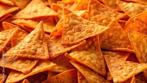 Close-up shot of Doritos , snack, chips, popular, crunchy, salty, spicy, triangular, vibrant, colorful, food