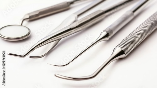 dental, instrument, stainless, steel, hygiene, care, health, dentist, tool, equipment, oral, medicine, clinic, treatment, health care, medicals, teeth, exam, mirror, probe, scaler, metal, metallic, shiny, gleaming, surgical, instrument, sharp, point, curved, hook, dentistry, professional, clean, sterile, nobody, background, white, close, up