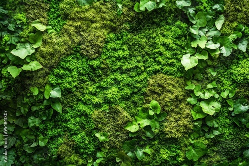 Close-up surface of the wall covered with green moss. Modern eco friendly decor made of colored stabilized moss. with generative ai