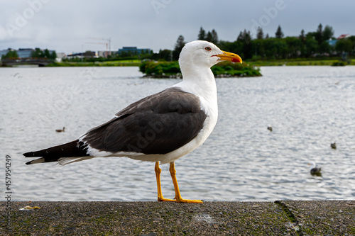 Closeup view of a beautiful seagull in Reykjavik Iceland