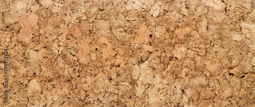 Close-up view of a brown cork texture background, showcasing the natural and uneven surface characteristics. Ideal for design and texture references.