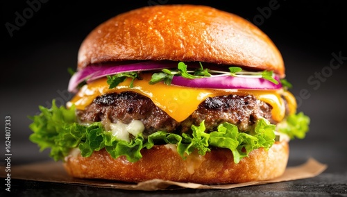onion, appetising, american, burger, eatery, bun, photo, epicure, cheese, meat, delicious, cooked, cookery, tasty, fresh, image, close, meal, juicy, food, cheeseburger, closeup, lettuce, sandwich, detail, favor