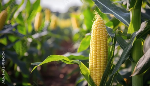 corn, maize, field, plant, agriculture, farming, food, yellow, green, leaf, cob, kernel, stalk, growth, summer, harvest, nature, rural, closeup, detail, ripe, sunlight, fresh, bright, vibrant, natural, organic, vegetable, crop, plantation, cultivation, farmland, countryside, vegan, vegetarian, healthy, nourishment, diet, gold, photo, illustration, stock, image