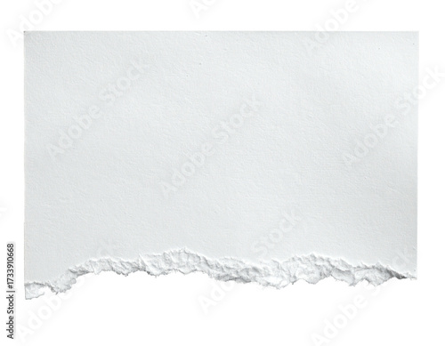 torn, paper, white, sheet, edge, jagged, blank, texture, rough, surface, detail, closeup, isolated, single, fragment, abstract, monochrome, plain, background, contrast, emptiness, simplicity, clean, pristine, neat, damaged, destruction, tear, rip, waste, discard, reveal, minimal, artistic, creative, design, element, shape, form, delicate, fragile, crisp, subtile, realistic, photographic, snapshot