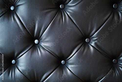 Close-up view of a tufted black leather surface