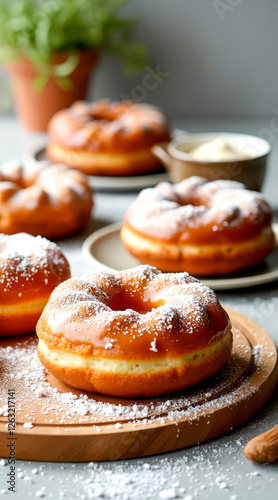 donut, caramel, powdered, sugar, baked, good, pastry, sweet, round, delicious, gold, sugary, tasty, dessert, food, appetising, treat, culinary, confectionery, brown, glazed, sprinkled, mouth-watering, deliciously, deliciously, sweetness, tempting, indulgent, bakery, pastry, cake, eat, eating