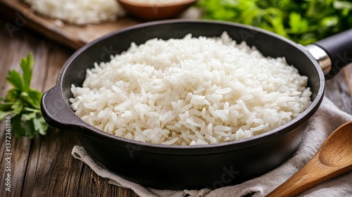 rice, simmering, cooked, pan, dark, kitchen, closeup, aroma, dinner