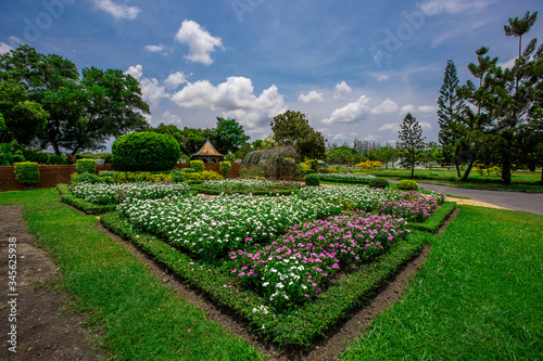 Close-up view of the various plants planted in the park,for the beauty of the spectators,fresh and comfortable,while resting during the day