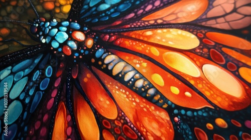 Close-up view of vibrant butterfly wings highlighting intricate patterns and divine proportions in nature's design