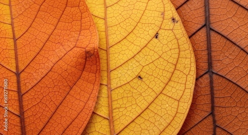 Close-Up View of Vibrant Orange Yellow Brown Leaves Textures