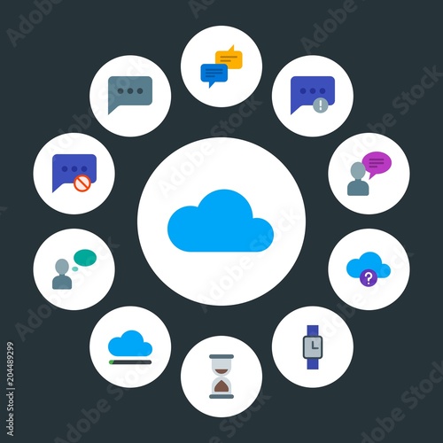 cloud and networking, chat and messenger, time Infographic Circle flat Icons Set. Contains such Icons as bubble, messaging, failure, message, cloud, watch and more. Fully Editable. Pixel Perfect