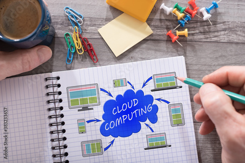 cloud, computing, technology, computer, concept, notepad, tablet, information, network, topview, laptop, networking, communication, hand, business, mobile, desk, symbol, cyberspace, blue, connection