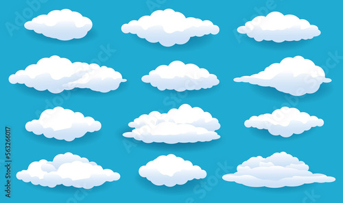 Cloud Set Isolated Blue Background