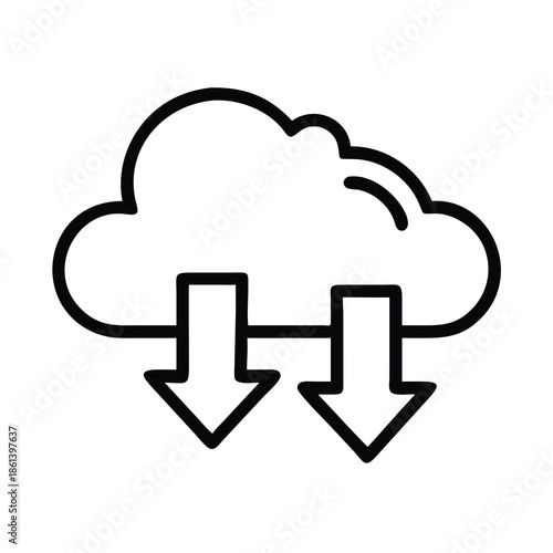 Cloud Storage Download Icon with Downward Arrows Black Line Art Outline for Data Technology