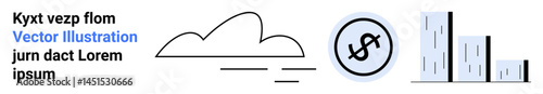 Cloud with lines, dollar coin, and bar chart create a minimalist composition. Ideal for business strategy, financial growth, technology, data analysis, cloud storage, investment and simple landing