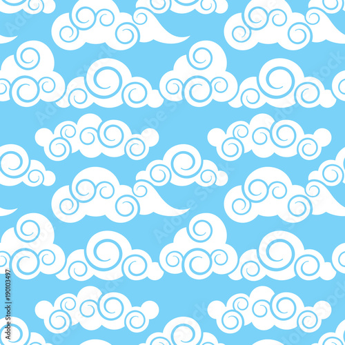 chinese, pattern, blue, sky, white, cloud, asia, traditional, vector, style, japanese, background, oriental, seamless, decorative, culture, design, asian, graphic, illustration, fabric, nature, wallpaper, ornament, art, abstract, textile, japan, eastern, texture, new, retro, decoration, china, repeating, weather, cloudy, curly, vintage, repetition, wave, repeat, bright, creative, space, abstraction, atmosphere, image, wrapping
