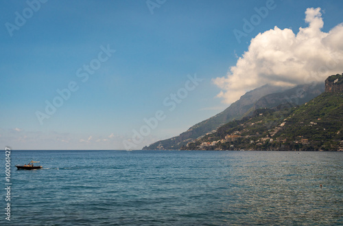 amalfi coast, cloud cover, minori, morning light, natural beauty, blue skies, clear sky, cloudscape, dramatic sky, horizon, italy, mediterranean, mountain ridge, mountain view, panoramic view, peaceful, picturesque, scenic view, serene, summer day, sunlight, tranquil, travel destination, vacation spot, weather