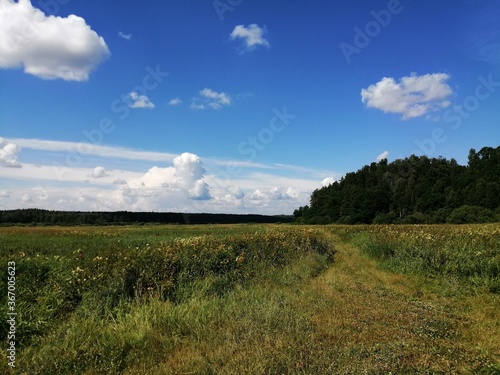 sky, landscape, nature, grass, field, cloud, summer, meadow, green, blue, cloud, mountain, rural, tree, forest, horizon, hill, view, outdoors, agriculture, beautiful, land, countryside, clear, country