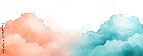 Clouds watercolor idea. Beautiful watercolor clouds blending orange and teal, perfect for creative projects.