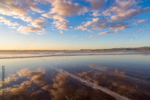 Cloudy sky reflected in sea