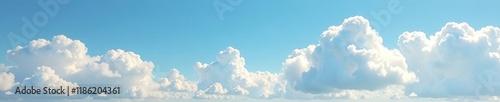 Cloudy sky with a range of white fluffy clouds in shades of cream, landscape, white, blue