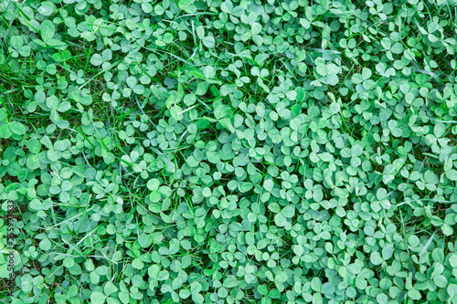 Clover lawn fragment close-up. Background for mockup of social media, eco shop, blank for design, flat lay.