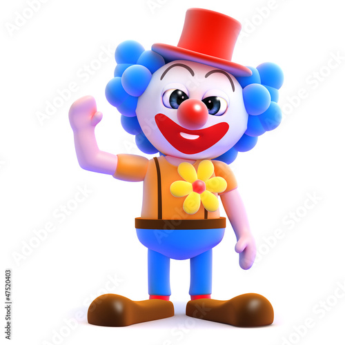 clown, waving, three-dimensional, hallo, funfair, wave, circus, hi, greeting, joker, comedian, idiot, jester, funny, humor, comedy, comic, cartoon, silly, stupid, cartoon film, buffoon, concept, oaf, ridiculous, mad, crazy, wig, weird, illustration, isolated, render, character