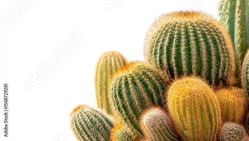 cactus, succulent, plant, desert, green, yellow, prickly, sharp, nature, flora, closeup, texture, growth, group, bunch, isolated, detail, botanical, hardy, wildlife, arid, palmy, spine, beam, globular, cylindrical, arrangement, greenish, xanthous, soft, exotic, white background, garden, home, indoor