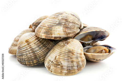 Cluster of Fresh Clams with Glossy Shells on White Background