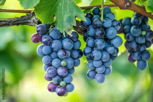 grape, vine, fruit, blue, purple, green, leaf, tree branch, cluster, bunch, nature, organic, fresh, ripe, juicy, sweet, delicious, harvest, vinery, wine, agriculture, summer, food, beverage, antioxidant, healthy, vitamin, nourishment, growth, botany, flora, plant, garden, background, macro, texture, pattern, photo, still life, beautiful, natural, vibrant, bright, colourful, vinification, leaf, bunch, flocked, snack