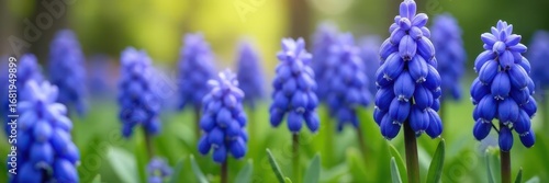 Clusters of vibrant blue grape hyacinths blooming in a spring garden , spring, pretty