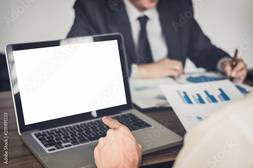 Co working conference, Business team meeting present, investor colleagues discussing new plan financial graph data on office table with laptop and digital tablet, Finance, accounting, investment