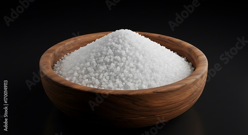 salt, sea salt, coarse salt, crystal, white, food, ingredient, seasoning, favor, taste, cooking, culinary, kitchen, healthy, natural, organic, mineral, condiment, spice, epicure, raw, texture, granular, pile, heap, bowl, wooden bowl, rustic, dark background, studio shot, closeup, macro, detail, food preparation, cooking ingredient, essential, basic, pantry, food photography, still life, natural food, healthy eating, diet