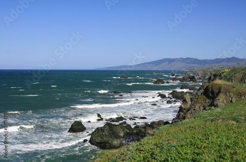 coast, california, route, 1, ocean, pacific, water, sea, wave, beach, hill, landscape, nature, outdoors, environment, background, clean, blue, sky, wavy, green, grass, rock, mountain, view, traveling, sightseeing, tour tourism, destination, vacation, scenic