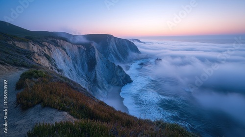 coastal, cliff, ocean, mist, sunrise, sunset, fog, cloud, nature, scenic, landscape, view, dramatic, serene, tranquil, beauty, travel, hiking, adventure, vacation, photo, california, sea, wave, gold, colours, outdoors, foggy, misty, coast, hill, mountain, rock, beach, peak, voyage, wander, explore, stunning, imposing, breathtaking, wonder, picturesque