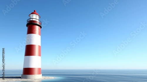 lighthouse, sea, ocean, sky, red, white, tower, coastal, landscape, seascape, horizon, day, summer, calm, serene, tranquil, peaceful, navigation, beacon, guidance, hope, safety, travel, adventure, discovery, maritime, blue, water, sun, bright, clear, daytime, light, structure, building, architecture, tall, vertical, isolated, solitary, scenic, beautiful, natural, photo, image, picture, photo