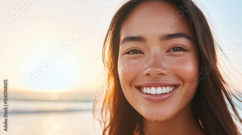 coastal, sunrise, smile, fresh, woman, beach, serene, morning, ocean, horizon, warmth, glow, happiness, peaceful, nature, light, calmness, sea, landscape, early, dawn, positive, cheerful, joy, relaxation, sunshine, sand, sky, breeze, calm, contemplative, refreshing, harmony, beauty, face, expression, new, day, rejuvenating, inspiration, hope