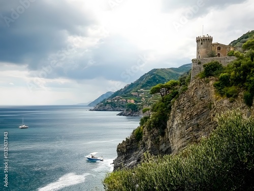 mediterranean sea, summer getaway, rocky shore, travel destination, vacation spot, coast, ocean, boat, castle, cliff, landscape, water, nature, tour tourism, travel, italy, seascape, sailing, adventure