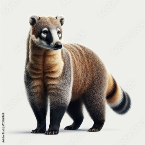 Coati, nasua, pizote, anton, tejon mexicano, Coatimundi, Hog-nosed Coon, White-nosed Coati, isolated White background.