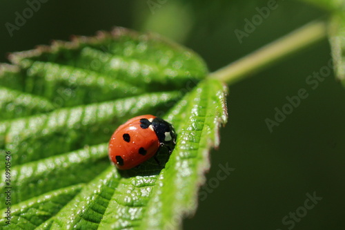 Coccinelle sur une feuille de ronce