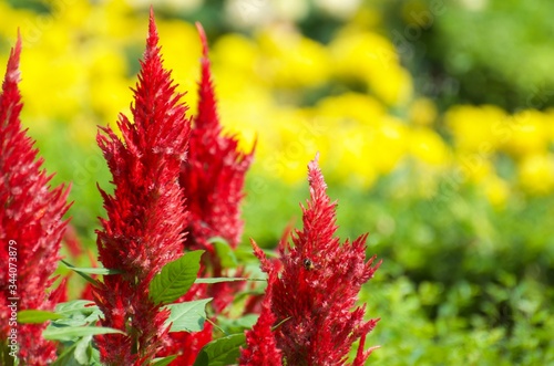 Cockscomb, Chinese Wool Flower, bright red in the garden