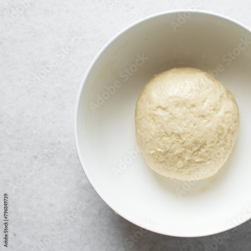 Coco bread dough rising in a white mixing bowl, process of making jamaican coco bread