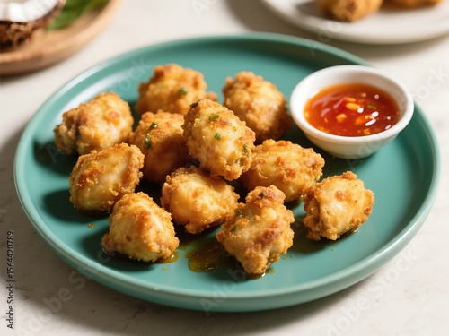 Coconut Curry Chicken Bites with Sweet Chili Sauce. These golden-brown chicken bites are marinated in a rich coconut curry blend, baked or fried to perfection