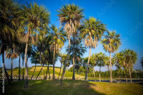 Coconut palm trees in a public park at ChiangMai, Thailand