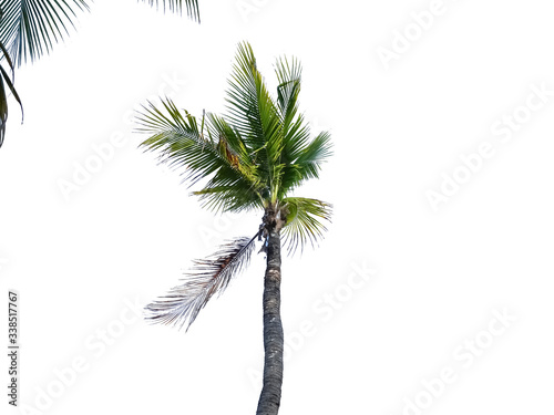 Coconut trees on the beach are being blown up by summer storms..isolated with cliping path.