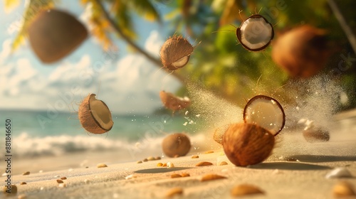 coconut, tropical, vacation, beach, paradise, relaxation, exotic, sand, sandy, island, ocean, healthy, holiday, nature, sunny, water, fruit, summer, travel, half, palm, milk, sun, white, drink, leisure, food, fresh, sea, sweet, get-away, idylli, caribbean, refreshing, seascape, shoreline, tropics, turquoise, chill, coastal, coastline, coco, health, juice, palm tree, shell, tropical beach, alcohol, blue water