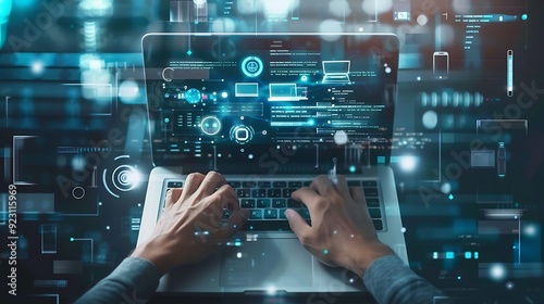 coding, digital, interface, laptop, futuristic, technology, programming, computer, screen, keyboard, typing, datum, code, software, application, development, web, design, cyber, network, cyberspace, future, innovation, progress, virtual, reality, automation, artificial, intelligence, machine, learning, cloud, computing, graphic, modern, abstract, blue, dark, light, blur