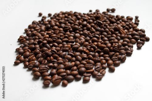 coffee beans brown on white isolated background with close-up location with blurred background