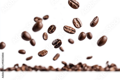 Coffee beans falling in the air isolated on a white background. Coffee beans flying , ai
